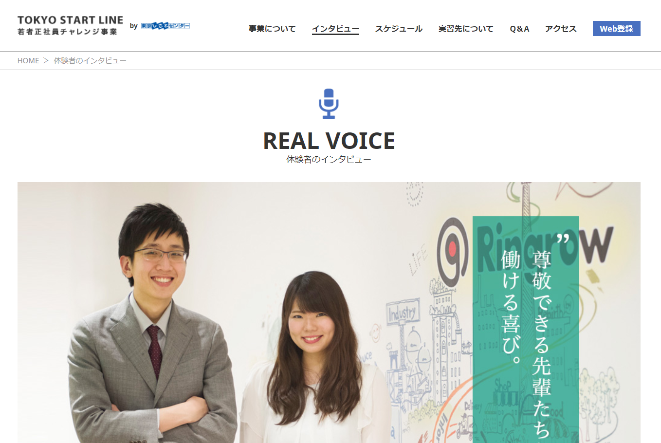 2016.05.31 Media 『TOKYO START LINE 若者正社員チャレンジ事業』ホームページに掲載されました! ツイート シェア 弊社社員が掲載されました 「TOKYO START LINE 若者正社員チャレンジ事業」のホームページに総務課の石原と人事課のツンのインタビューが掲載されました。 http://inte.tokyo/voice/voice08/(掲載記事URL) 一覧へ戻る