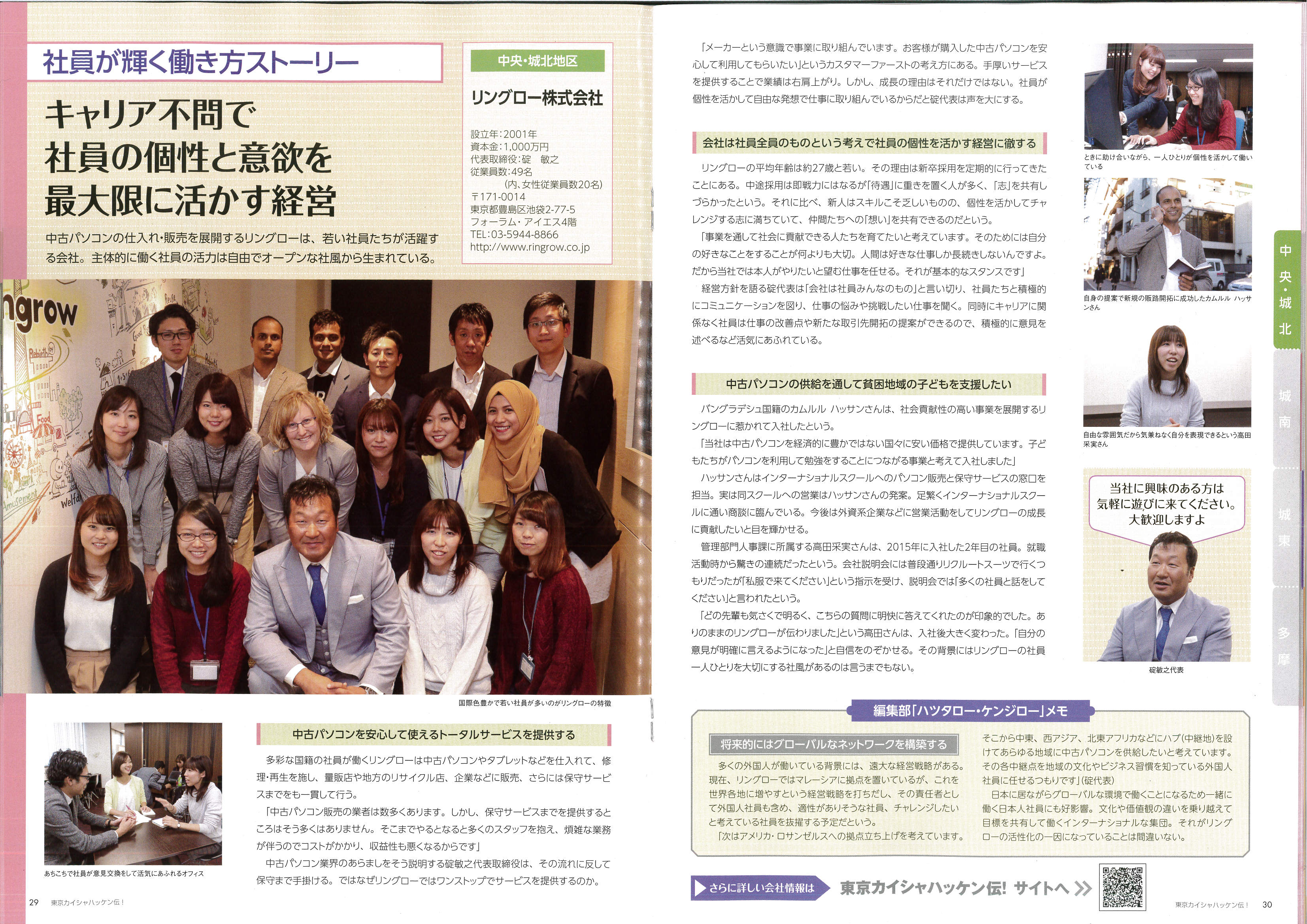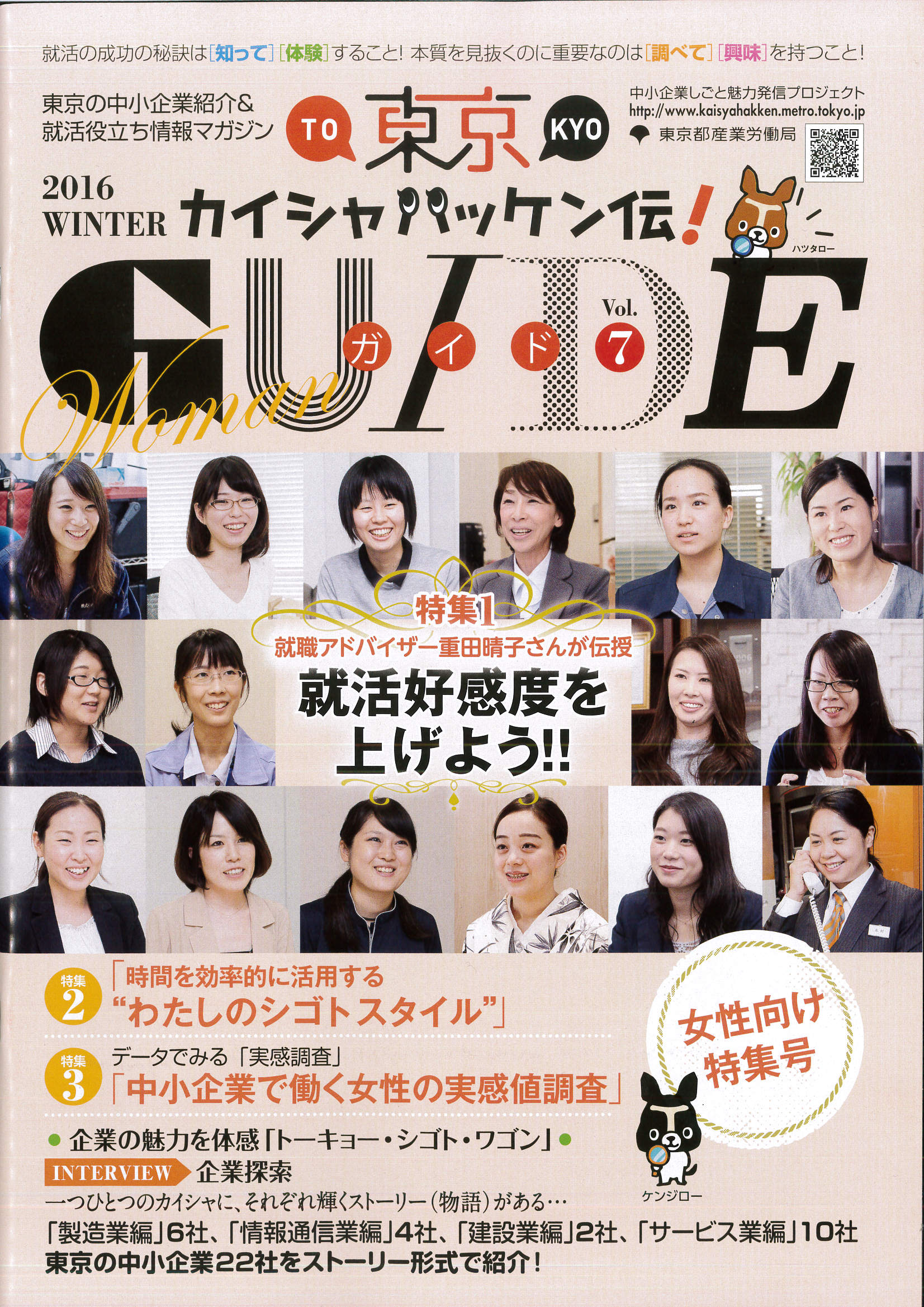 2016年冬号の東京カイシャハッケン伝にて、企業紹介ページに代表の碇、販売部門のハッサン、人事課の高田のインタビューが掲載され、特集ページに販売部門の田中のインタビューが掲載されました。