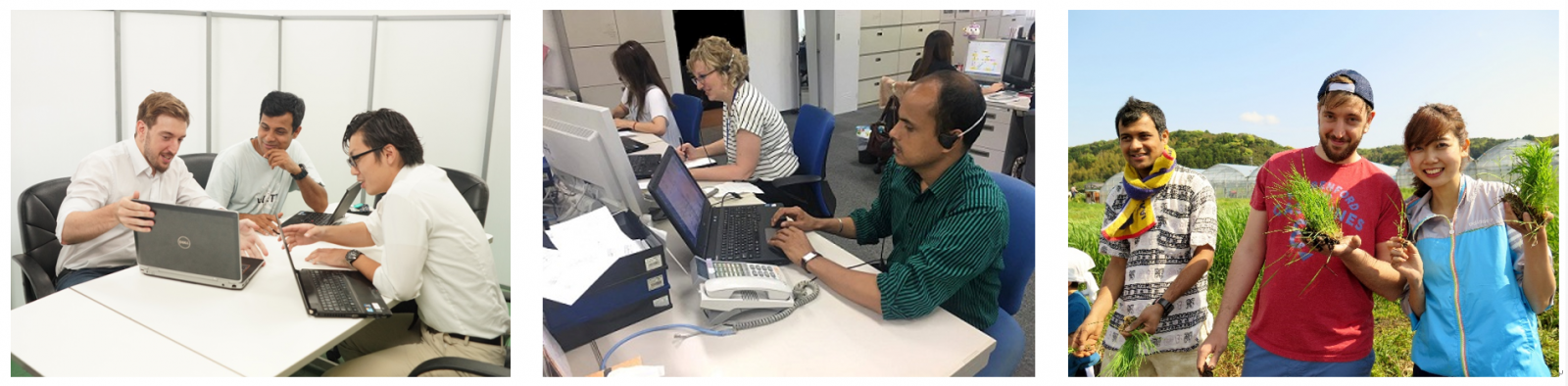 社員57名のうち6名が外国人です(バングラデシュ、ネパール、イタリア、モンゴル、エジプト、フランス)。インターン生も積極的に受け入れています(過去に、タイ、ドイツ、ケニア、ギリシャ、インドネシア)。日本人についても新卒採用だけでなく通年採用を行い、多様な人材を確保しています。