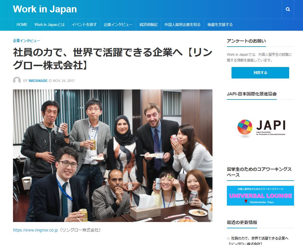 2017.11.24 Media 『Work in Japan』に掲載されました! ツイート シェア 弊社社員が掲載されました Work in Japanに人事課の小俣と国内営業部門のハッサンのインタビューが掲載されました。 http://japi-oshigoto.com/%E7%A4%BE%E5%93%A1%E3%81%AE%E5%8A%9B%E3%81%A7%E3%80%81%E4%B8%96%E7%95%8C%E3%81%A7%E6%B4%BB%E8%BA%8D%E3%81%A7%E3%81%8D%E3%82%8B%E4%BC%81%E6%A5%AD%E3%81%B8%E3%80%90%E3%83%AA%E3%83%B3%E3%82%B0%E3%83%AD/(掲載記事URL) 一覧へ戻る