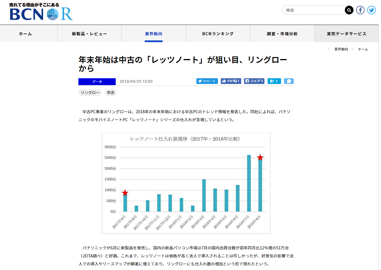 2018.09.29 Media 『BCN RETAIL』に掲載されました! ツイート シェア リングロー発信の中古パソコントレンド情報について掲載されました 2018年9月29日付のBCN RETAILにて、2018年末年始の狙い目商品情報が掲載されました。 https://www.bcnretail.com/market/detail/20180929_87226.html(BCN RETAIL・記事URL) 一覧へ戻る