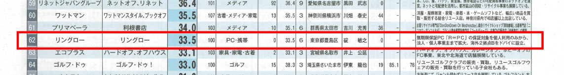 2019.01.11 Media 『リサイクル通信』2018年中古売上ランキングに掲載されました! ツイート シェア 中古売上ランキングにて62位にランクイン リングローが、2019年1月10日付のリサイクル通信の2018年中古売上ランキングに掲載されました。 ▼全体のランキングで62位にランクインしました。 http://www.recycle-tsushin.com/(リサイクル通信HP) 昨年度の結果はこちら! 一覧へ戻る