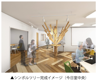 今日室中央には集学校DIYワークショップイベントで作ったシンボルツリーを設置し、葉の代わりに写真を飾り「長南集学校」の歴史を紡ぐ思い出の大樹にします。