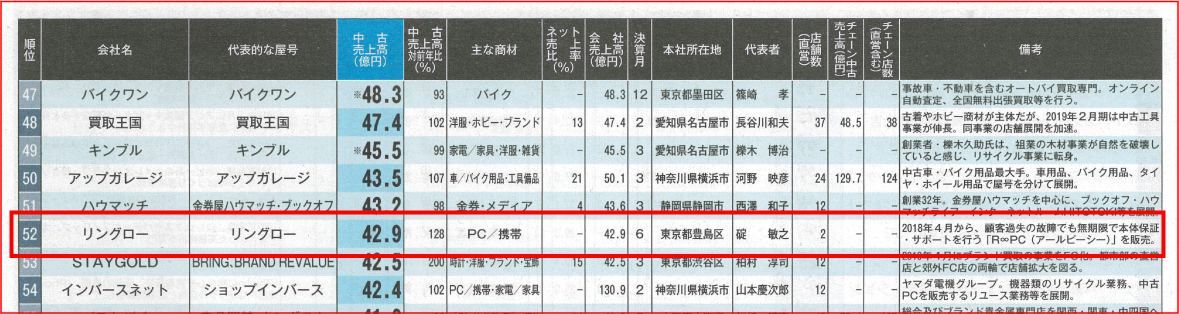 2020.01.10 Media 『リサイクル通信』2019年中古売上ランキングに掲載されました! ツイート シェア 中古売上ランキングにて52位にランクイン リングローが、2020年1月10日付のリサイクル通信の2019年中古売上ランキングに掲載されました。 ▼全体のランキングで52位にランクインしました。 http://www.recycle-tsushin.com/(リサイクル通信HP) 昨年度の結果はこちら! 一覧へ戻る