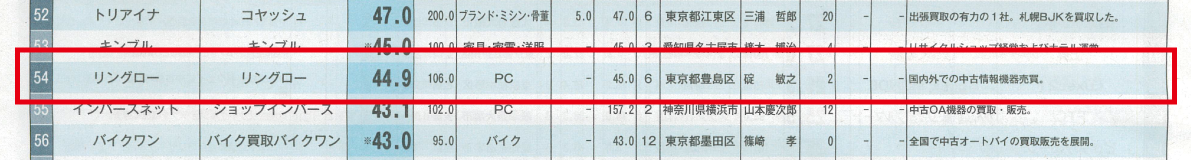 2021.01.11 Media 『リサイクル通信』2020年中古売上ランキングに掲載されました! ツイート シェア 中古売上ランキングにて54位にランクイン リングローが、2021年1月10日付のリサイクル通信の2020年中古売上ランキングに掲載されました。 ▼全体のランキングで54位にランクインしました。 http://www.recycle-tsushin.com/(リサイクル通信HP) 昨年度の結果はこちら! 一覧へ戻る