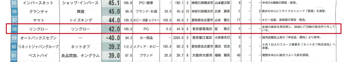 リングローが、2021年7月25日付のリサイクル通信の中古売上ランキング(2020年度新型コロナ下調査)に掲載されました。