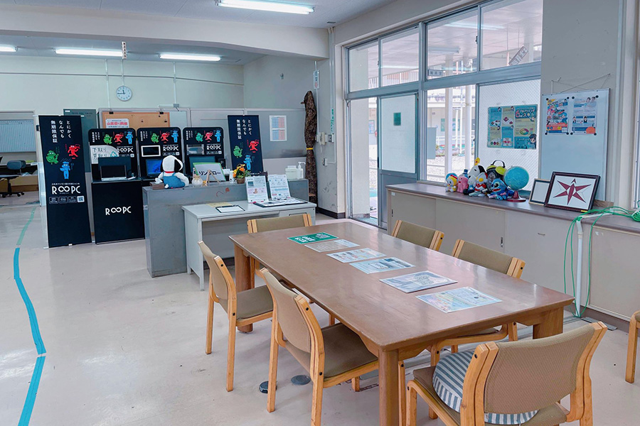 パソコンやスマートフォンを持ち込んで、いつでも使い方を学べる相談室兼スタッフの執務室。IT機器のご相談はもちろん、集中して作業がしたい時や地域の方々のご歓談の場、企業様の会議の場としてなど、どんな場面でもご利用いただけるオープンなスペースです。