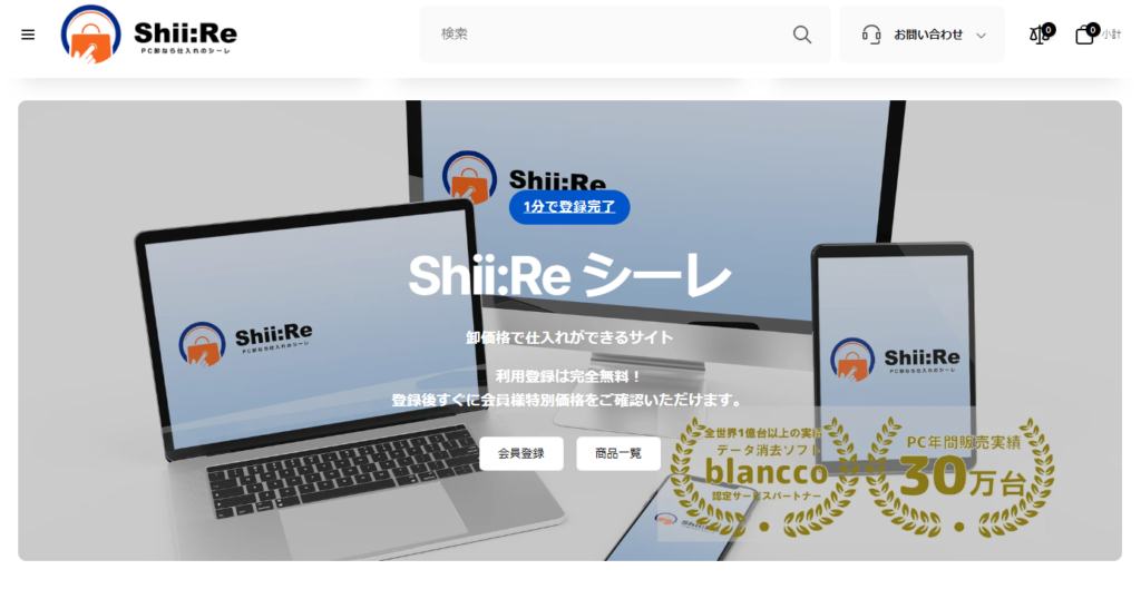 「Shii:Re」は卸業者向けの会員制直販サイトで、「仕入れ」から着想を得た造語になります。仕入れ担当の方なら1台から卸値で購入可能で、会員登録を行うことで販売価格をサイト上で確認いただけます(古物商許可番号を持っている方に限り登録可)。