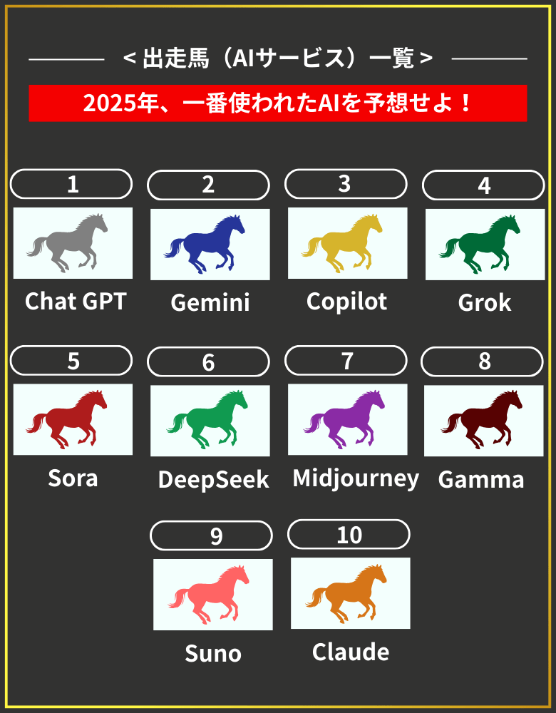 ① 2025年に一番使われたAIサービスの【単勝・3連単】を予想!