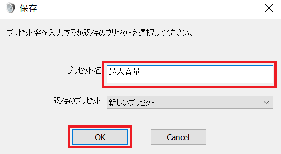 ⑥ バロメーター右にある「保存」をクリック、「プリセット名」の中に任意の名前を入力して「OK」をクリック