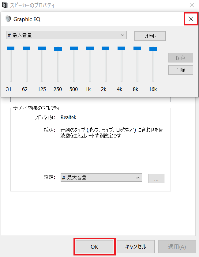 今回の記事は、サウンドデバイスが「Realtek High Definition Audio」の場合に有効な方法です。異なる場合は設定できないことがあります。