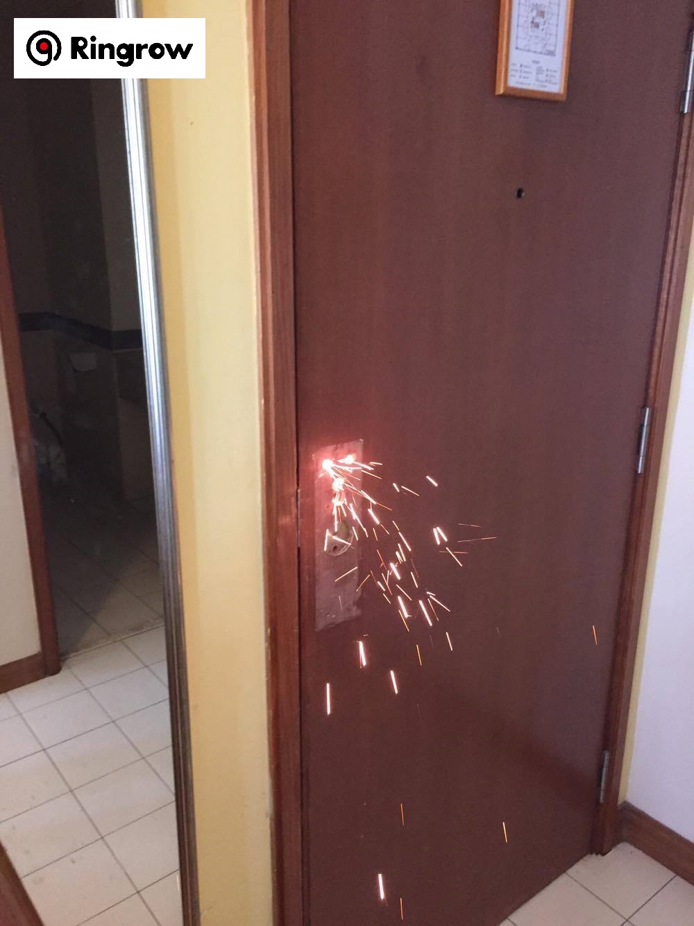 最初はドアノブの心中部分を回してうち鍵を回そうとしていましたが、それでも空く気配はなく、ドアノブ全体を強引に取り外していました。それでも何ともならず、あげくの果てにはサンダーで心中部分を切断し何とか空くようになりました。