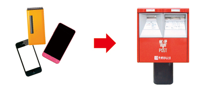 以下の連絡先から専用の袋を取り寄せて、使用済のモバイル機器を入れて、ポストに投函するだけ!